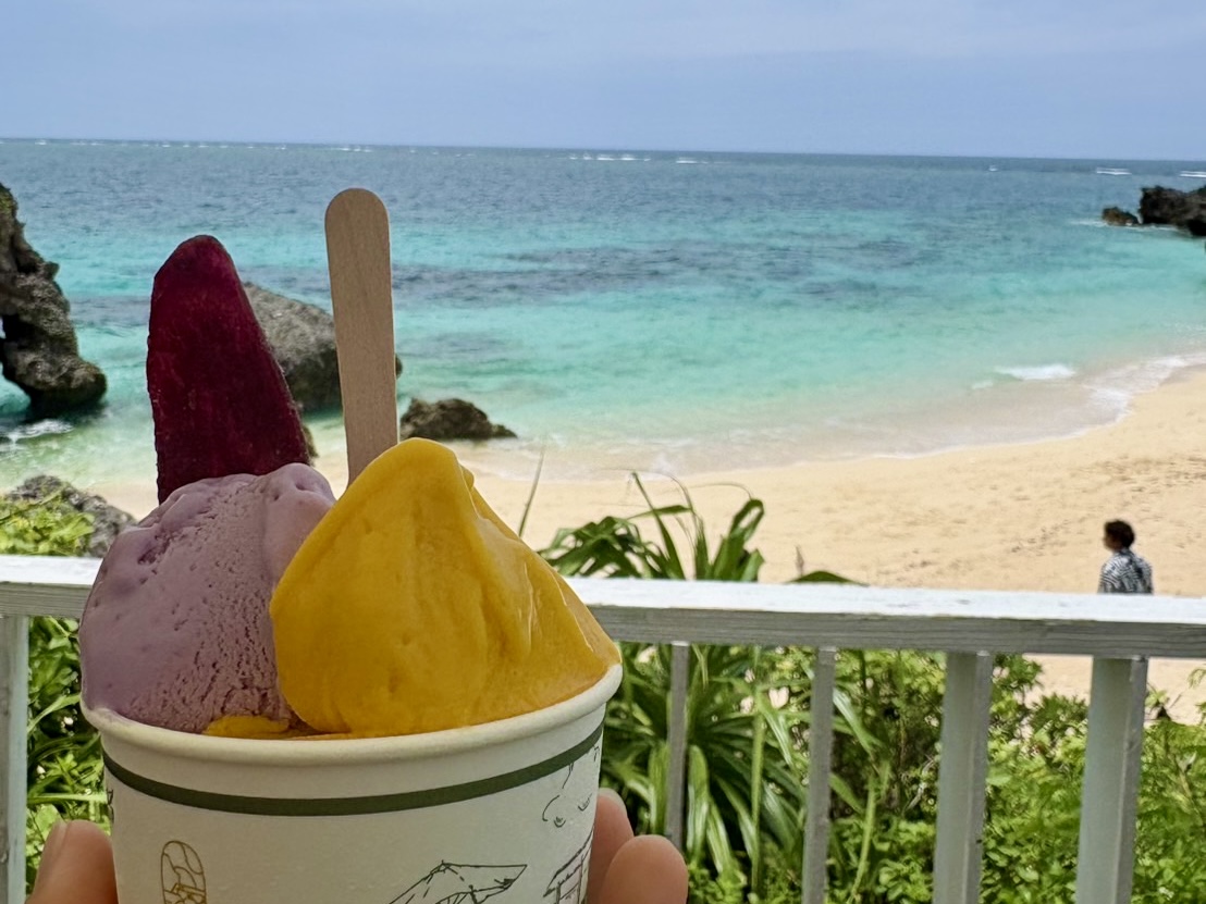 カフェの目の前がビーチなので、綺麗な海を見ながらひんやり美味しいジェラートを頬張るひとときは幸せそのもの!