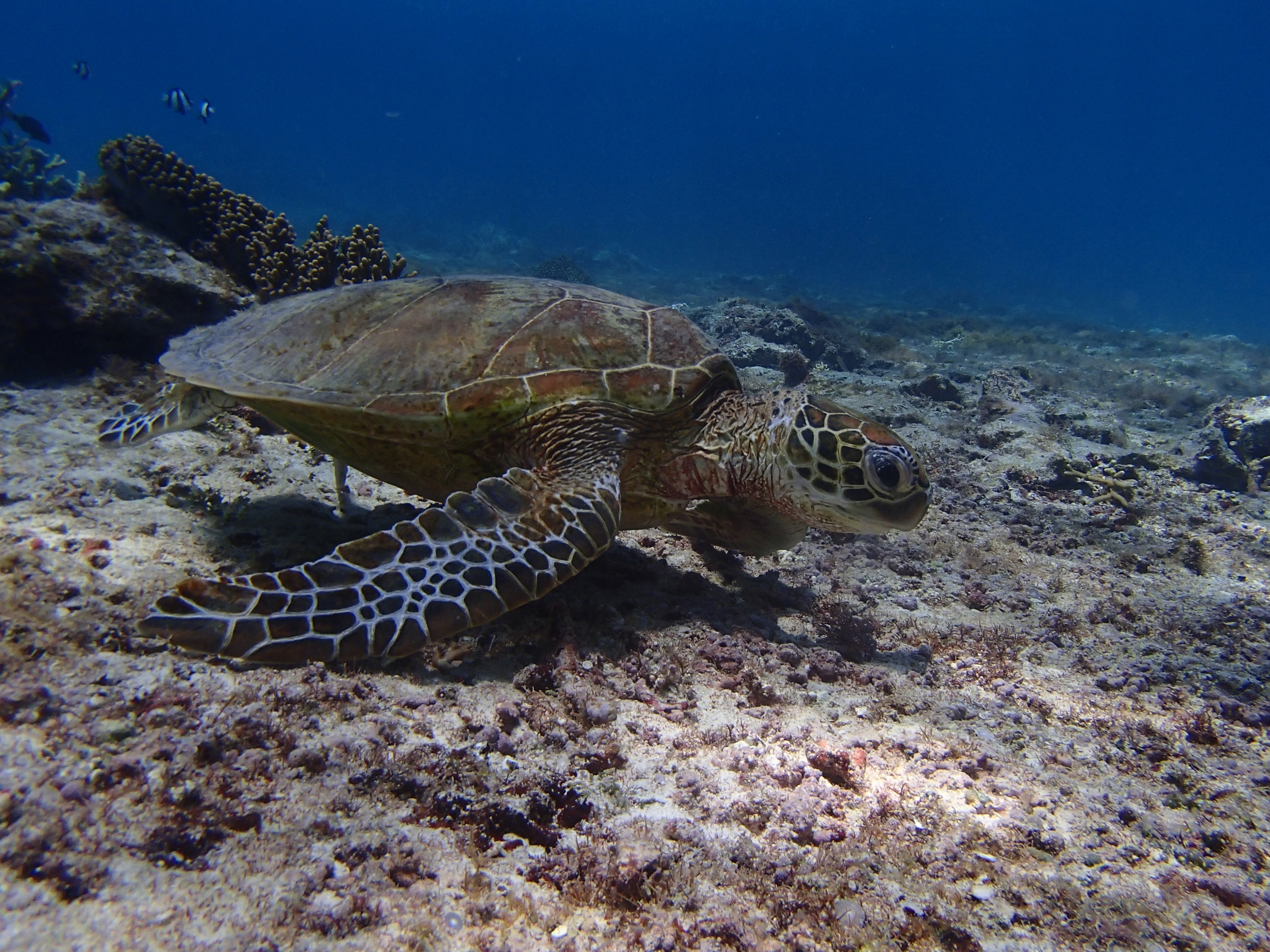 アオウミガメは、海藻類や海草類を主に食べます!(飽きないのかな?)