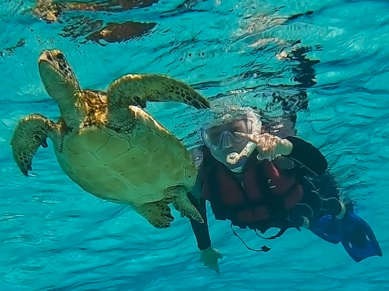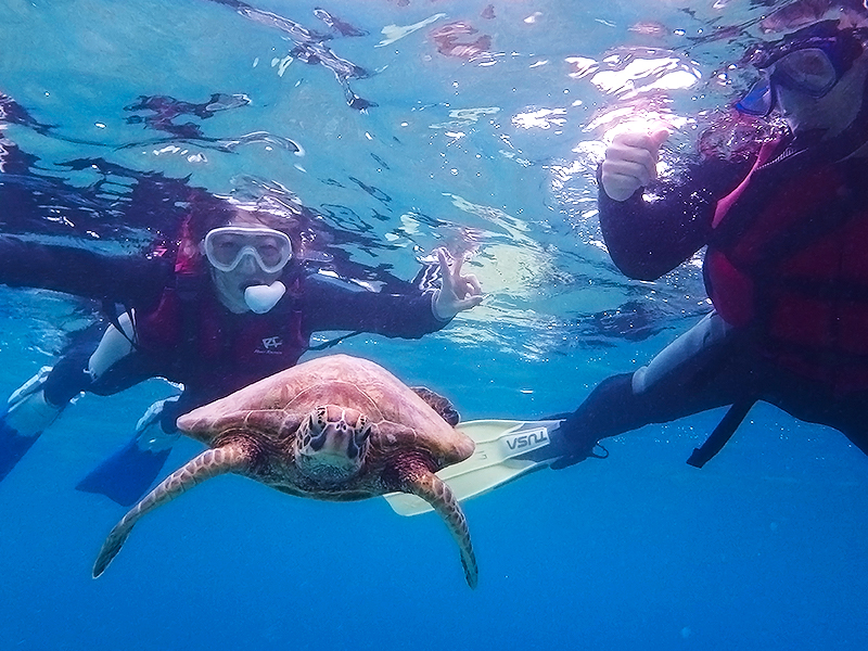 高確率で遭遇できるウミガメとの記念ショットをプレゼント♪