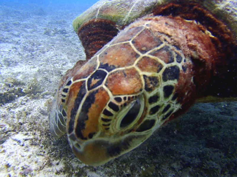 海にエントリーして直ぐにウミガメと出会えることも!