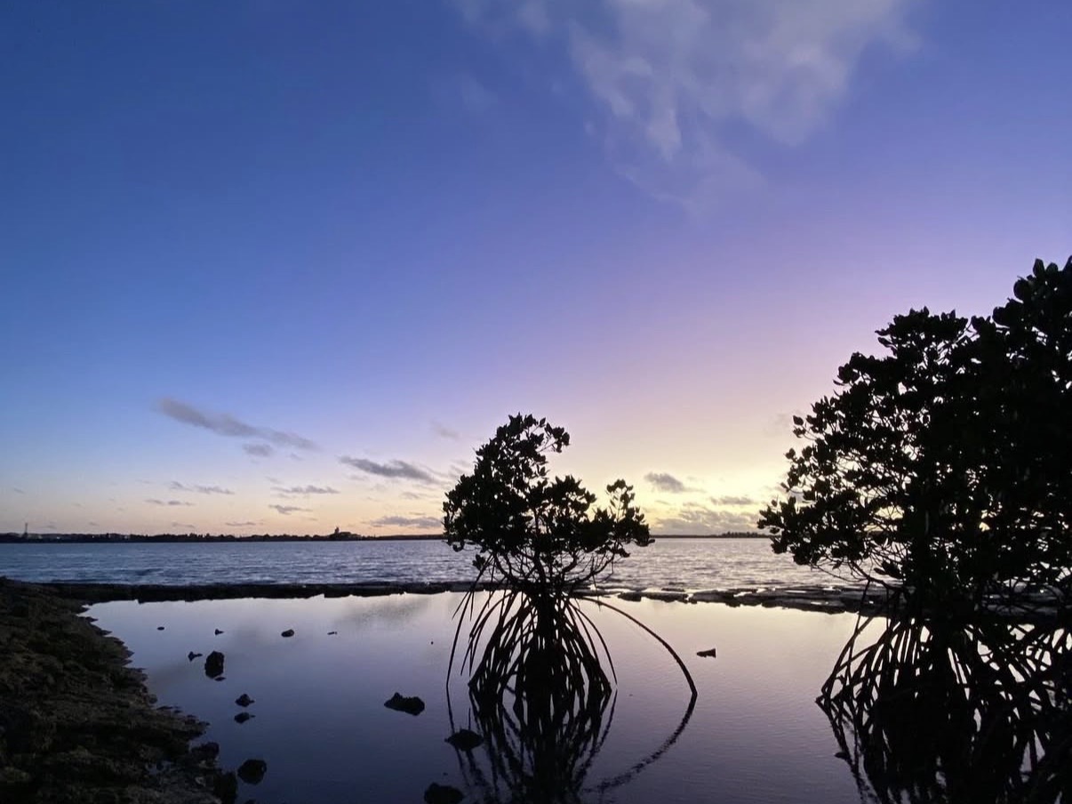 穏やかな与那覇湾のクリーミーブルーの海とマングローブの魅力的な景色🫶