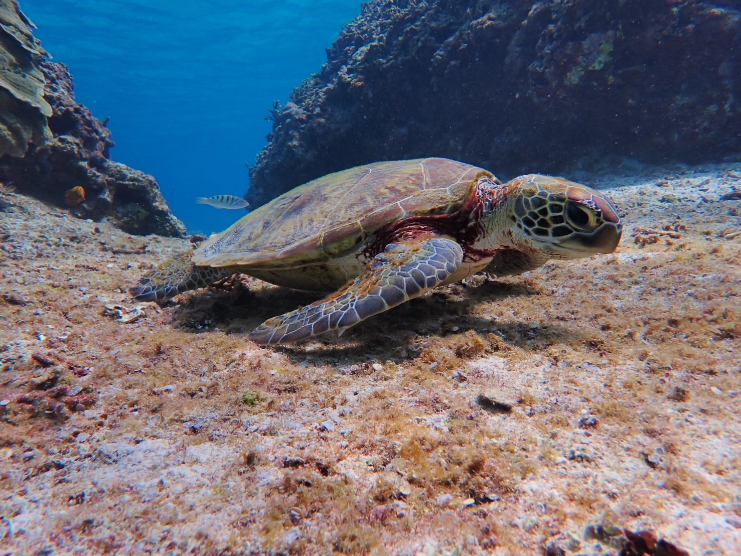八重干瀬 周辺の海では、運が良ければウミガメに出会えることがあります!!