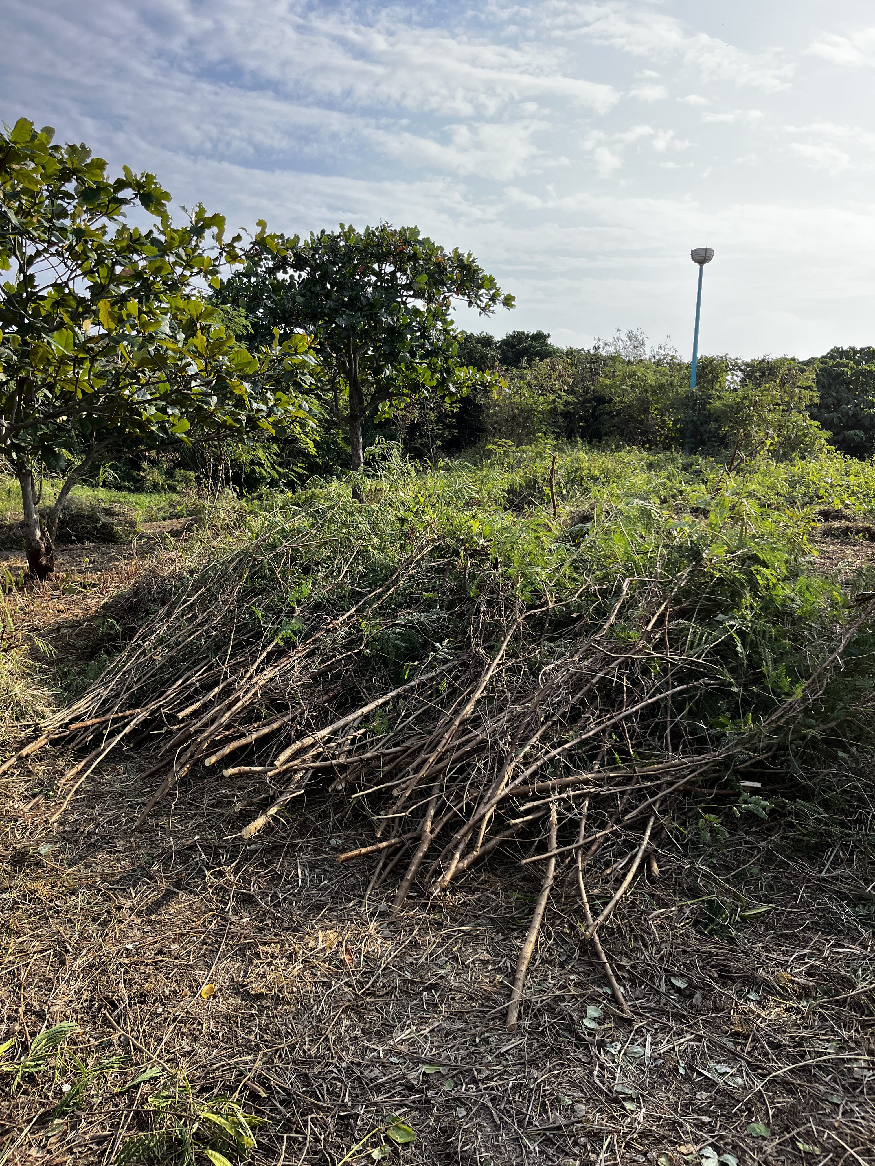 太陽の下でポカポカ陽気の中大量の雑草と木々と戦ってきました、、、