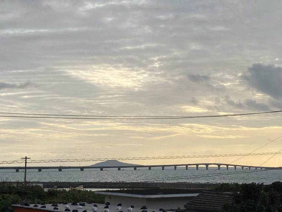 今日の宮古島は、薄い雲がかかっていますが、雲の隙間から優しく太陽の光が入ってとても気持ちの良い朝を迎えています。風も南寄りの風なので全く寒さを感じなく、今日は過ごしやすい1日になりそうです!