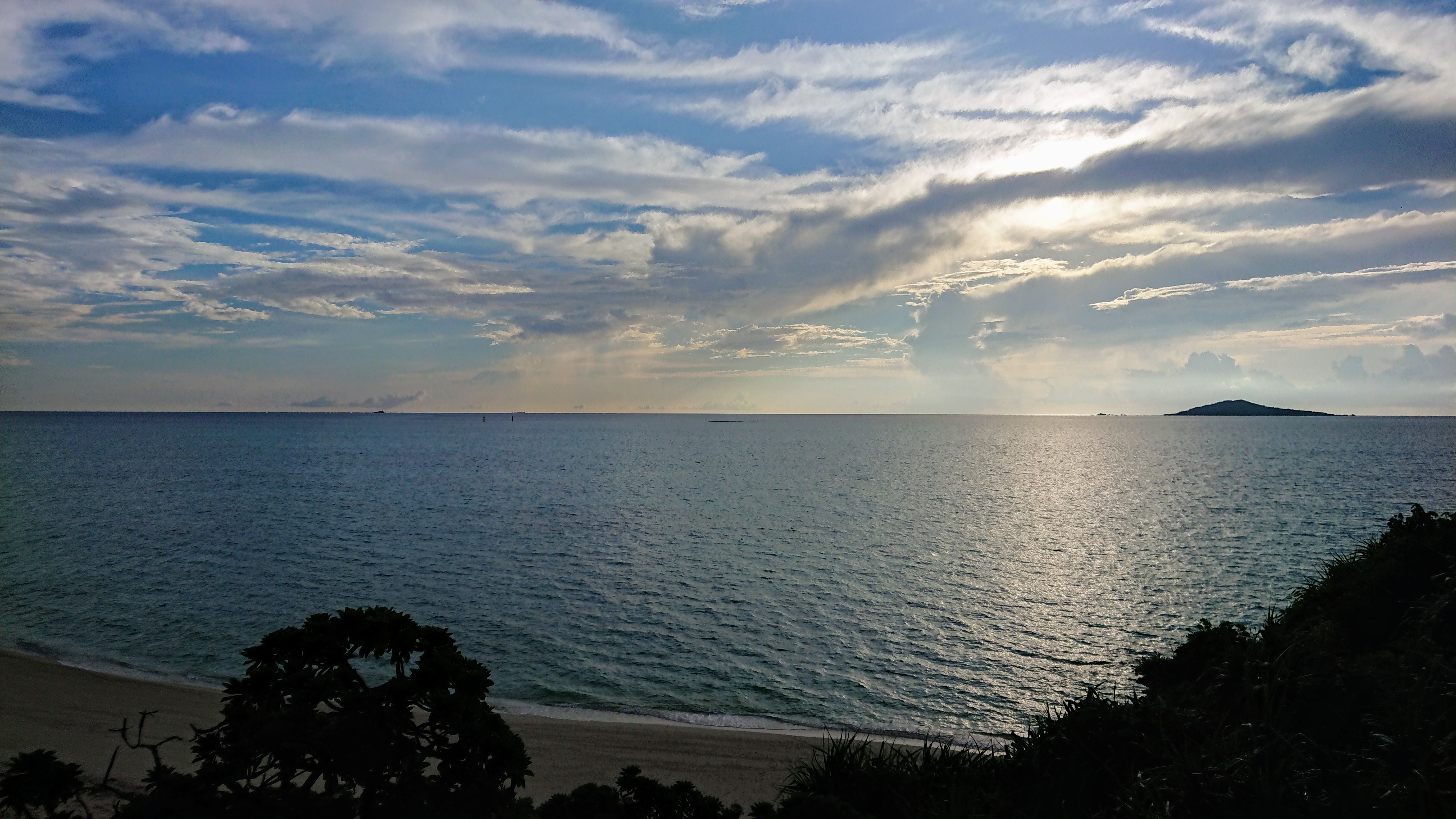 池間島の海美来裏側から大神島と八重干瀬方面を見ています。