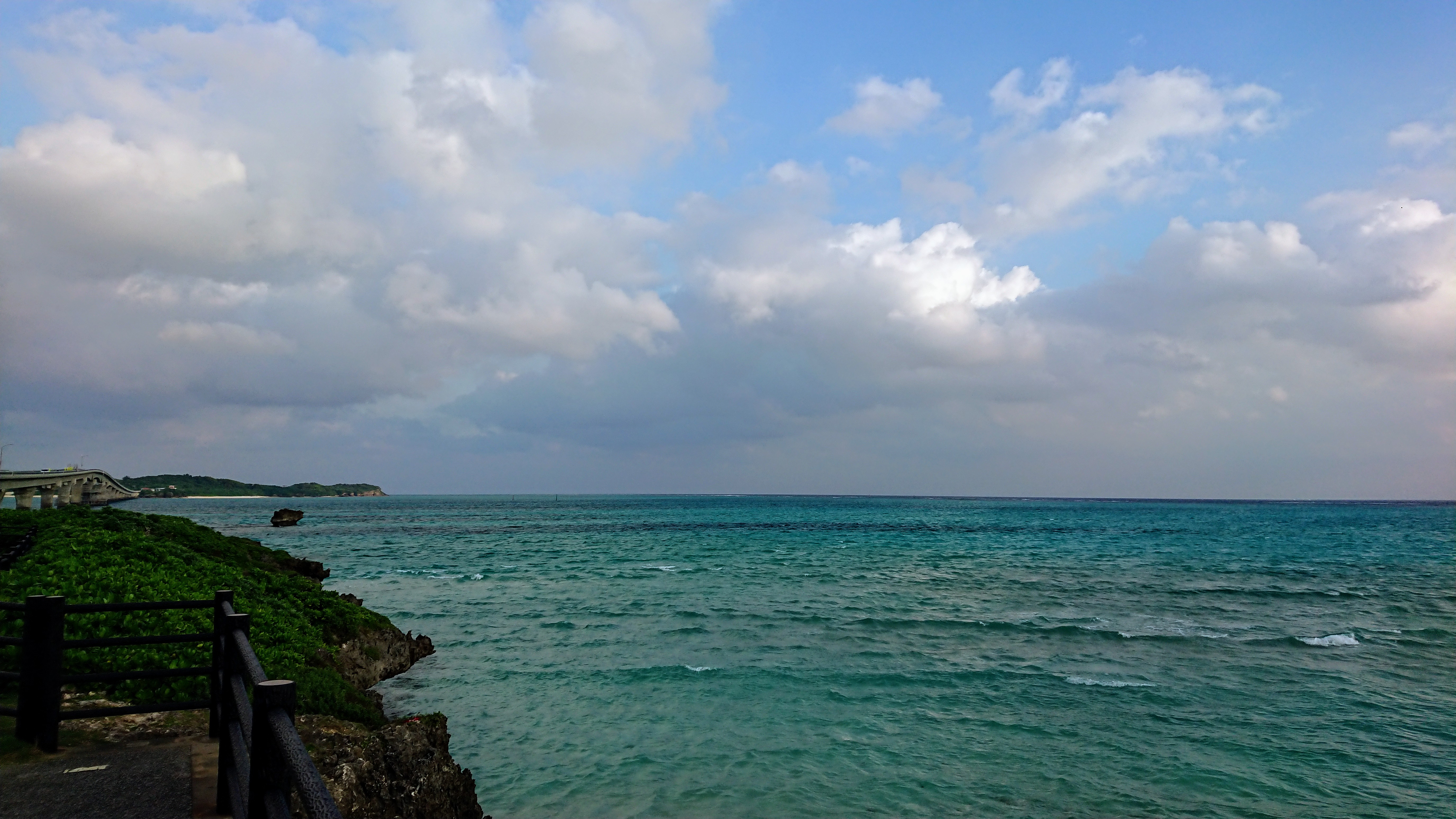 池間大橋手前の駐車場から八重干瀬と大神島方面の写真です。