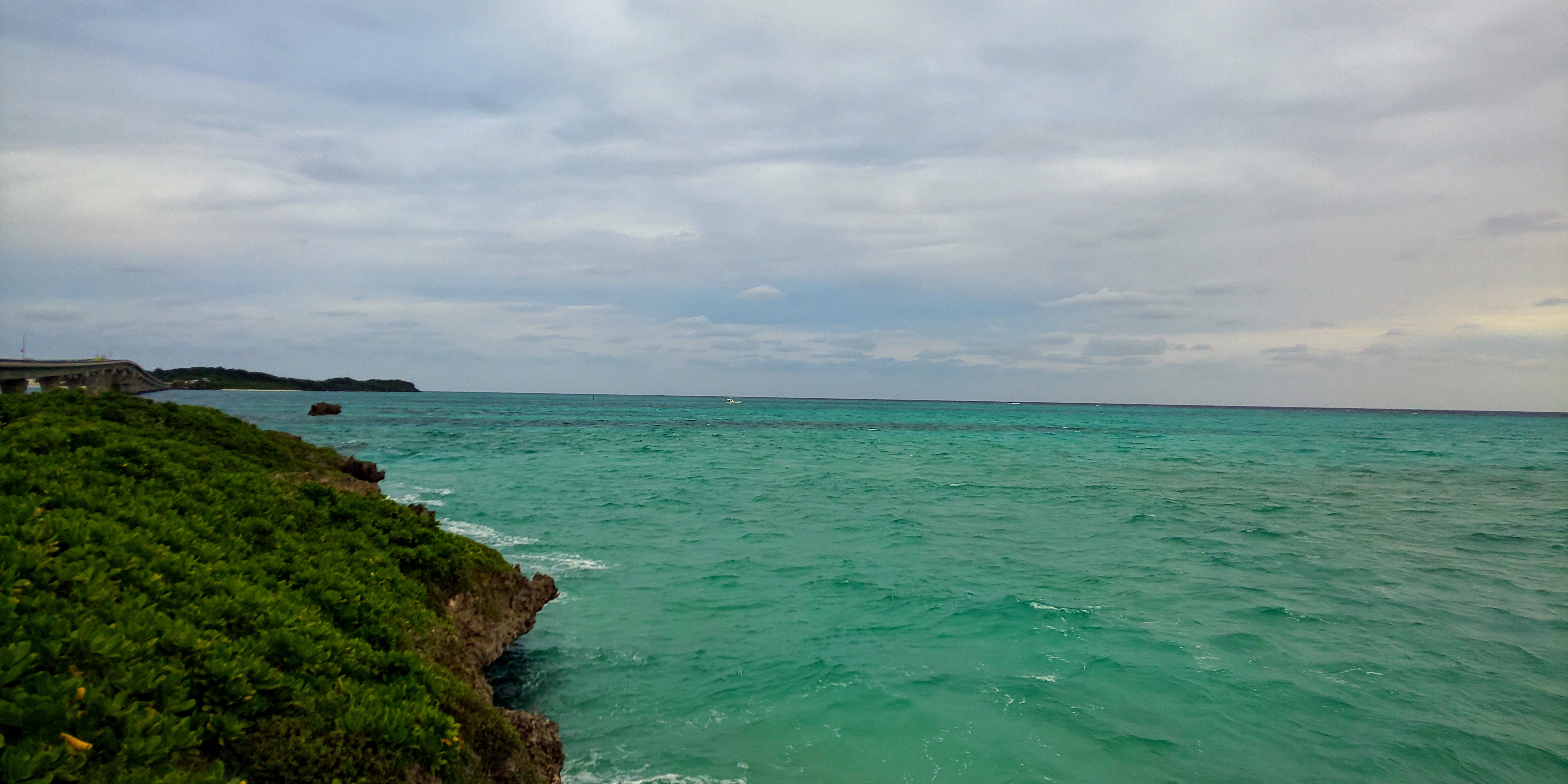 池間大橋の手前にある駐車場から八重干瀬方面の写真です。