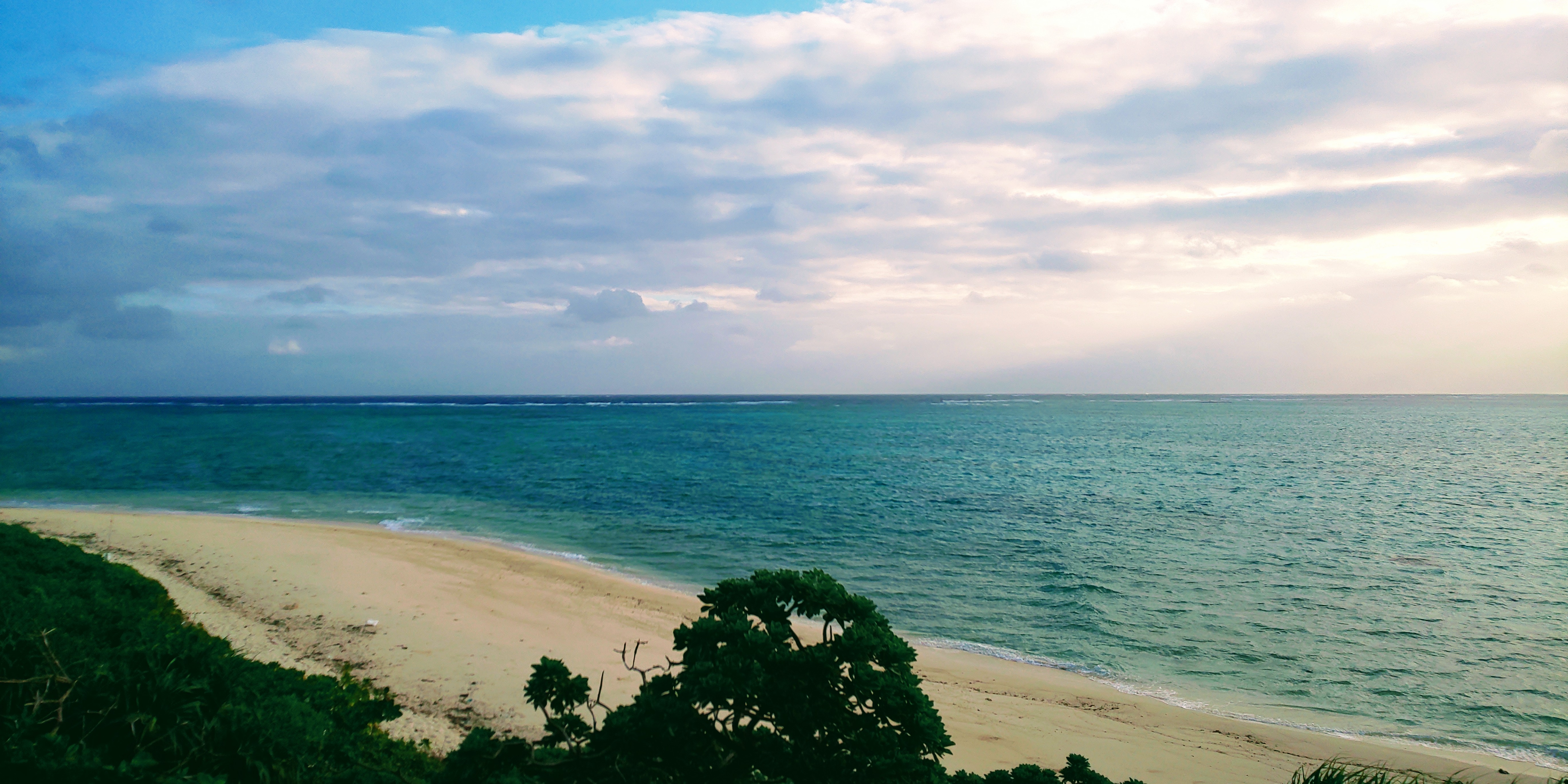 池間大橋脇のお土産屋さんから八重干瀬方面と大神島方面を見ています。