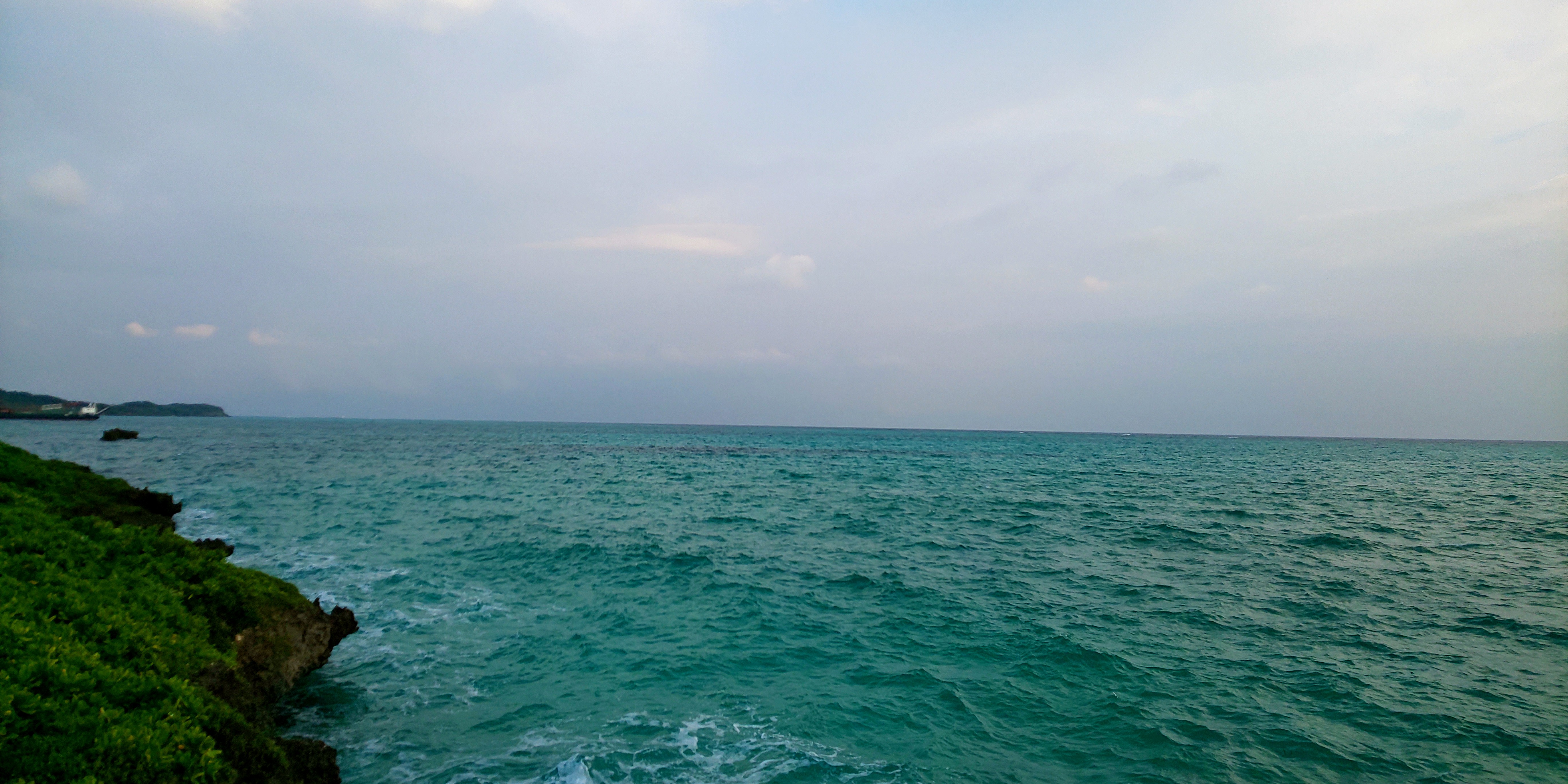 池間大橋の手前にある駐車場から八重干瀬方面の写真です。