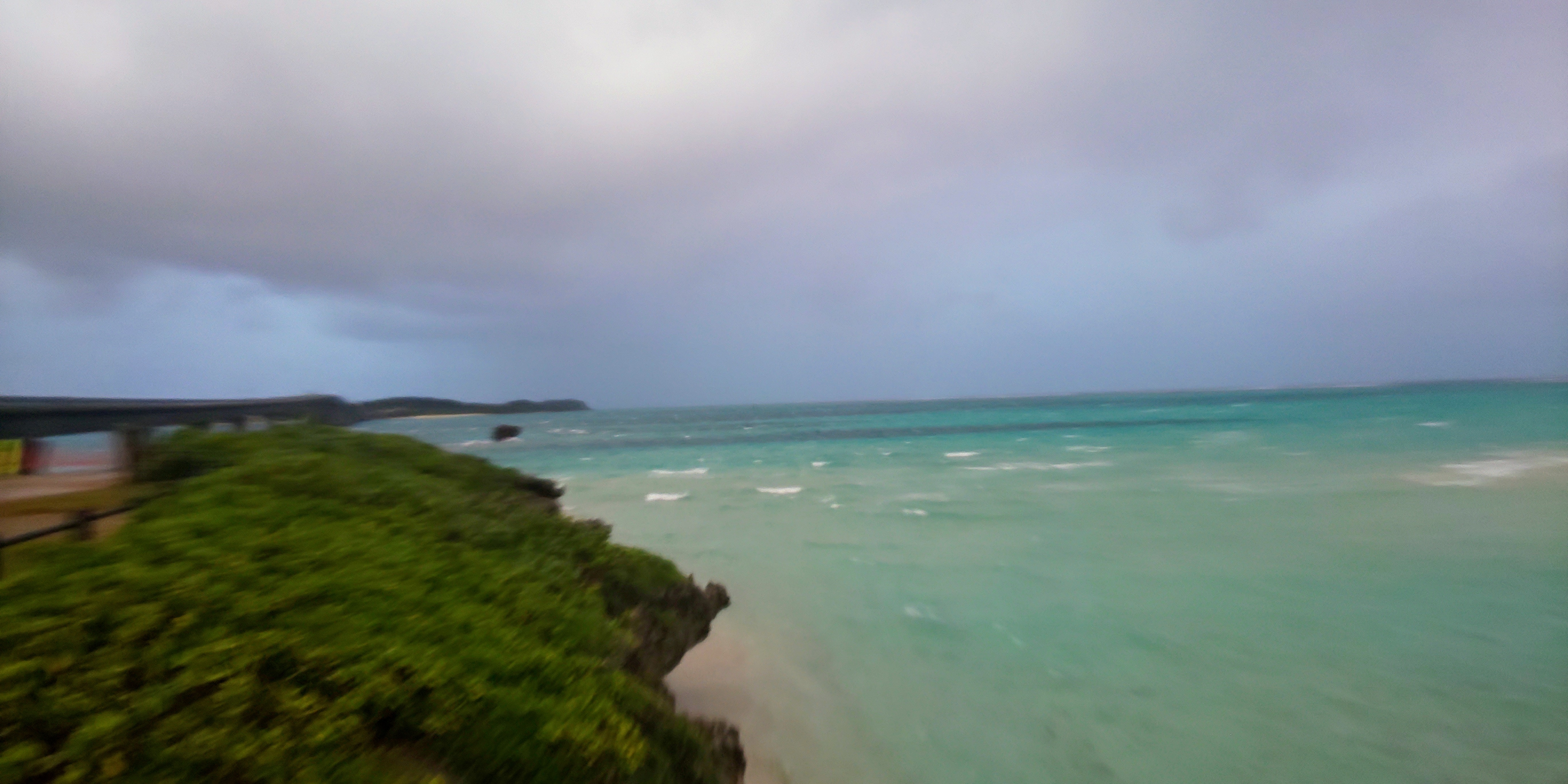 池間大橋手前の駐車場から大神島と八重干瀬方面の様子です。