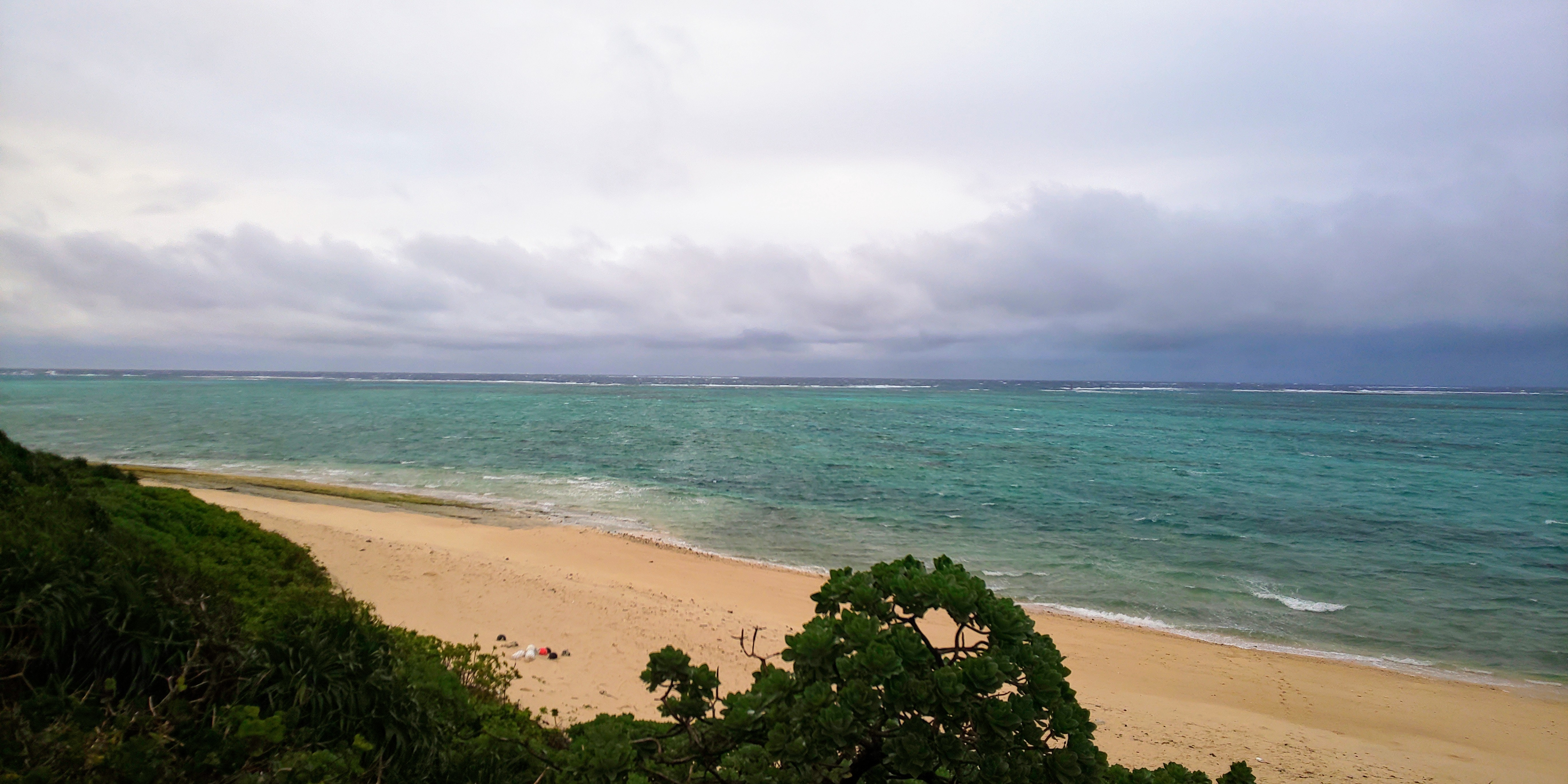 池間大橋横のお土産屋さん『海美来かいみーる』から大神島と八重干瀬方面の様子です。