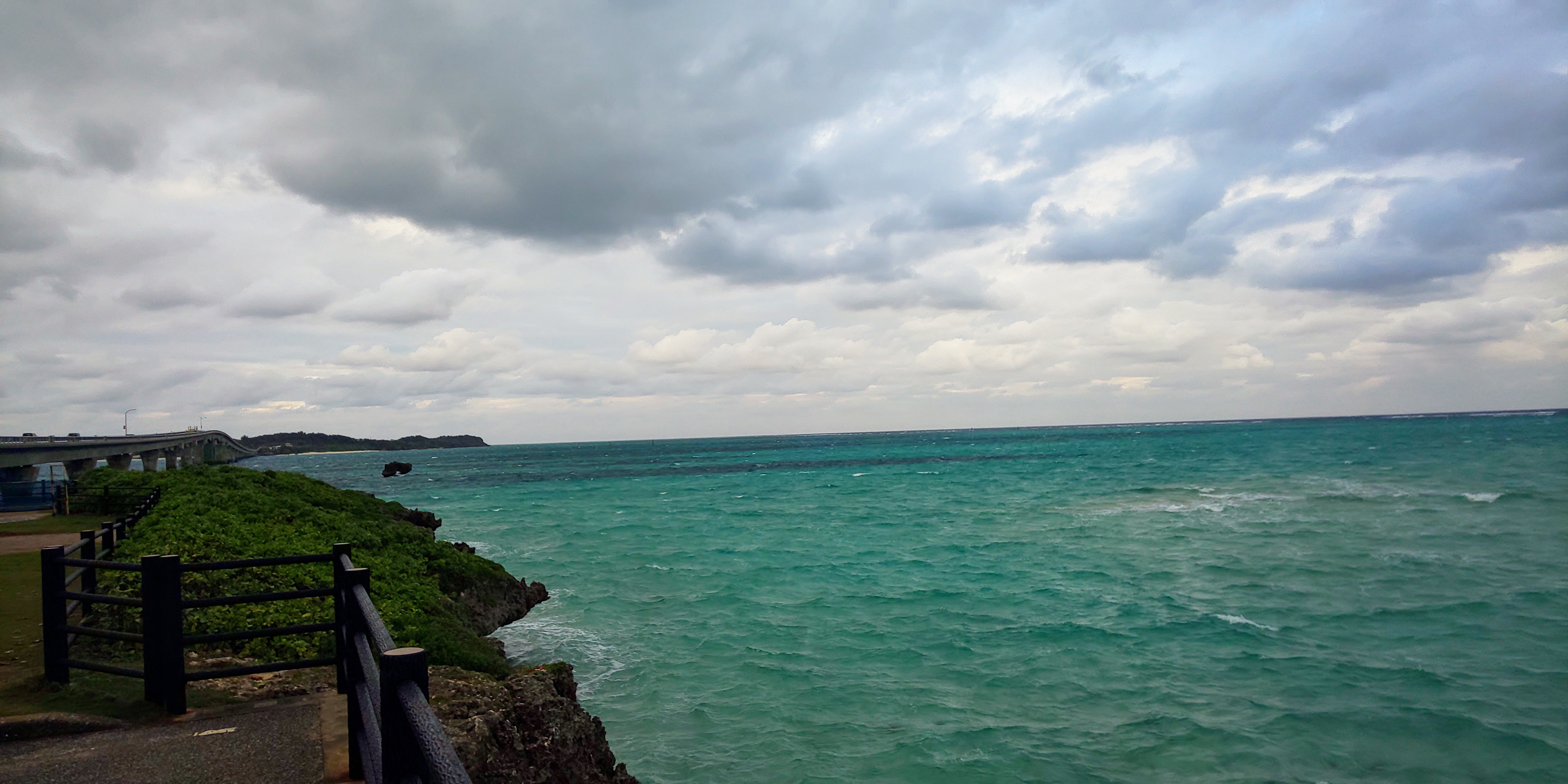 池間大橋から八重干瀬方面を見ていますが、沖合はなかなかたくさんの白波が立っています。