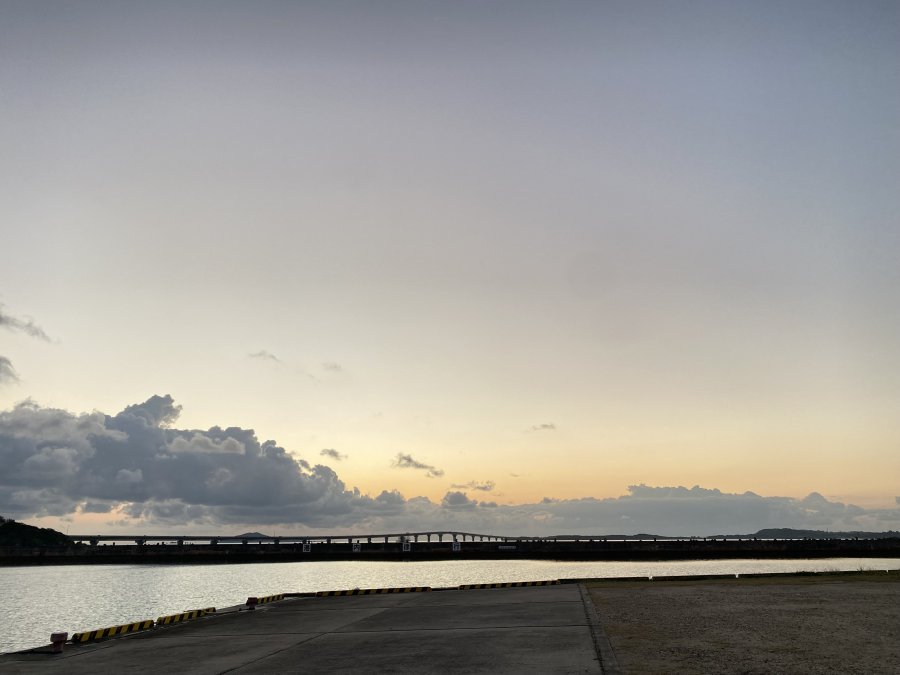 早朝は雲に覆われていた空も、日が上がってくるとともに青空が広がり始めている宮古島。