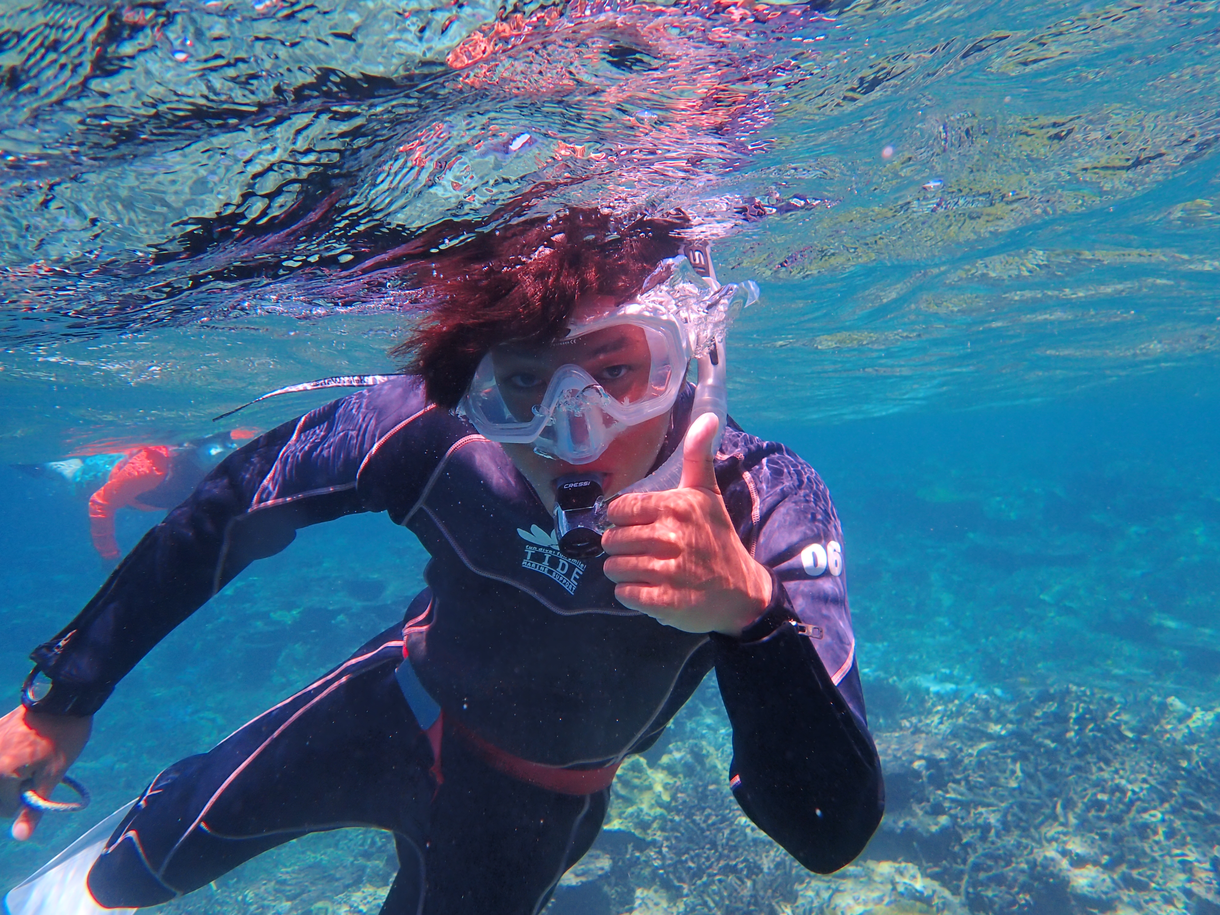 アクアベースの八重干瀬(やびじ)シュノーケル&パンプキンホールの現地スタッフのももこです。