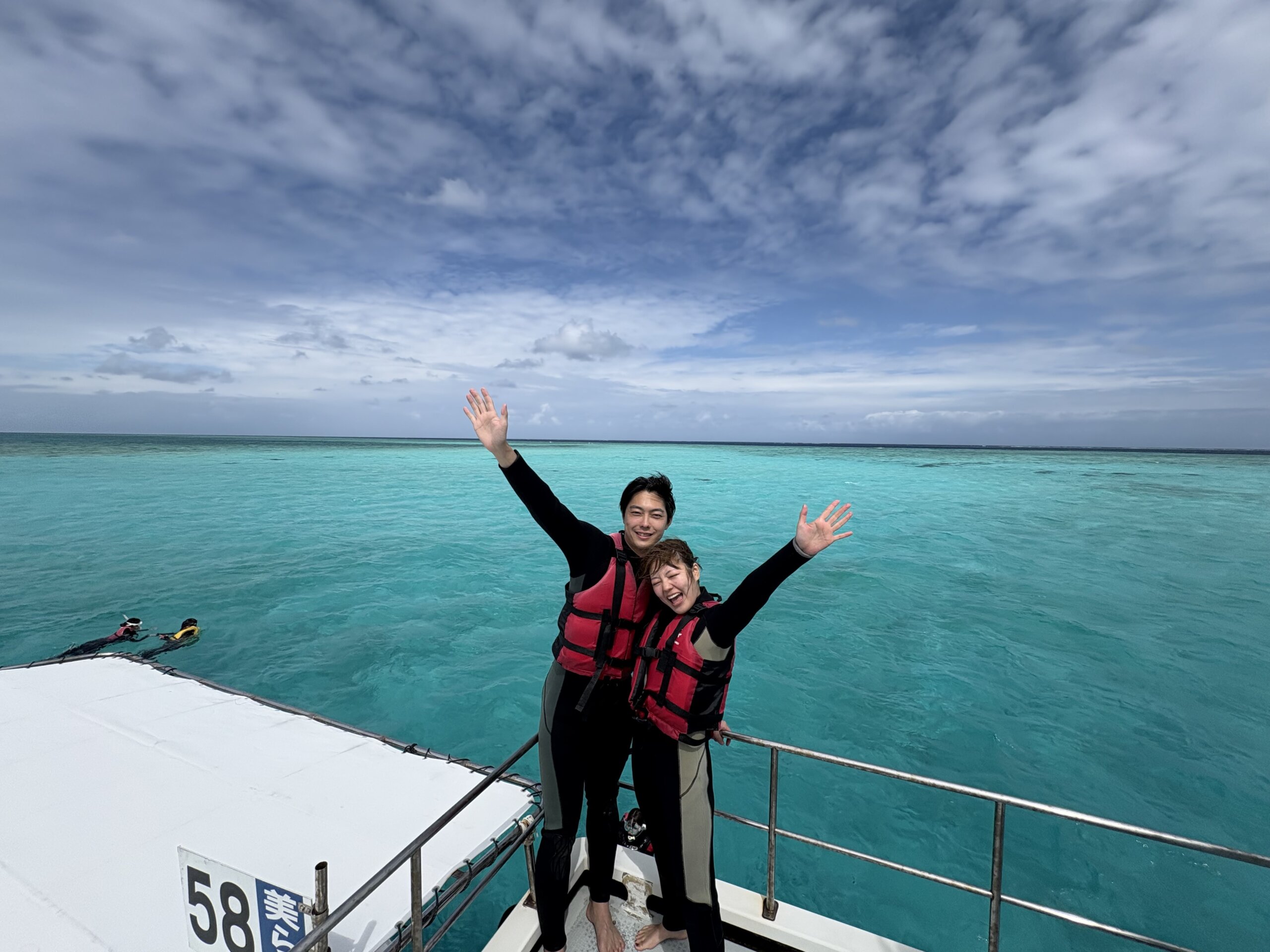 アクアベースは、1年を通して八重干瀬シュノーケルツアーを開催しているので寒さ対策もバッチリ!