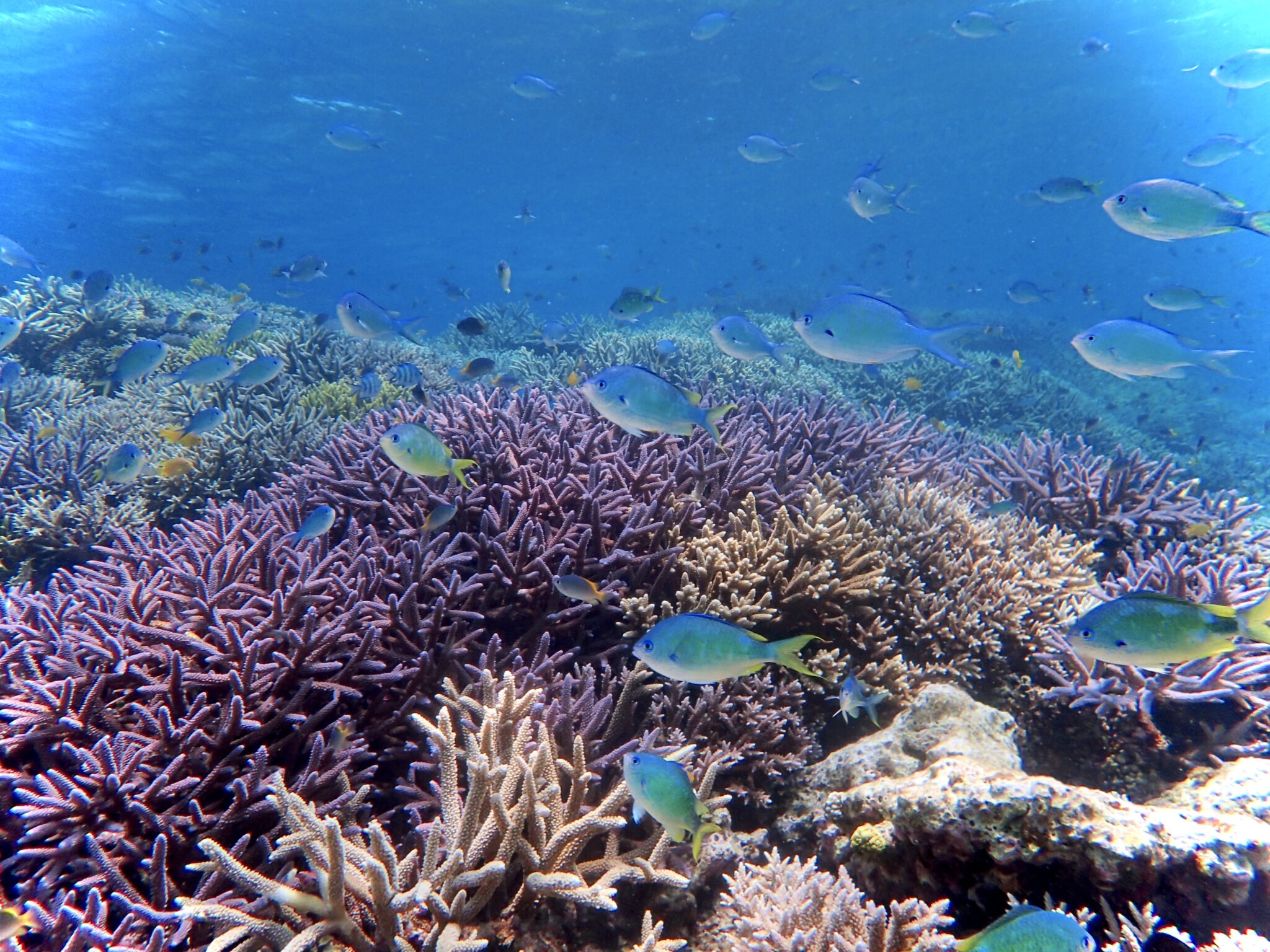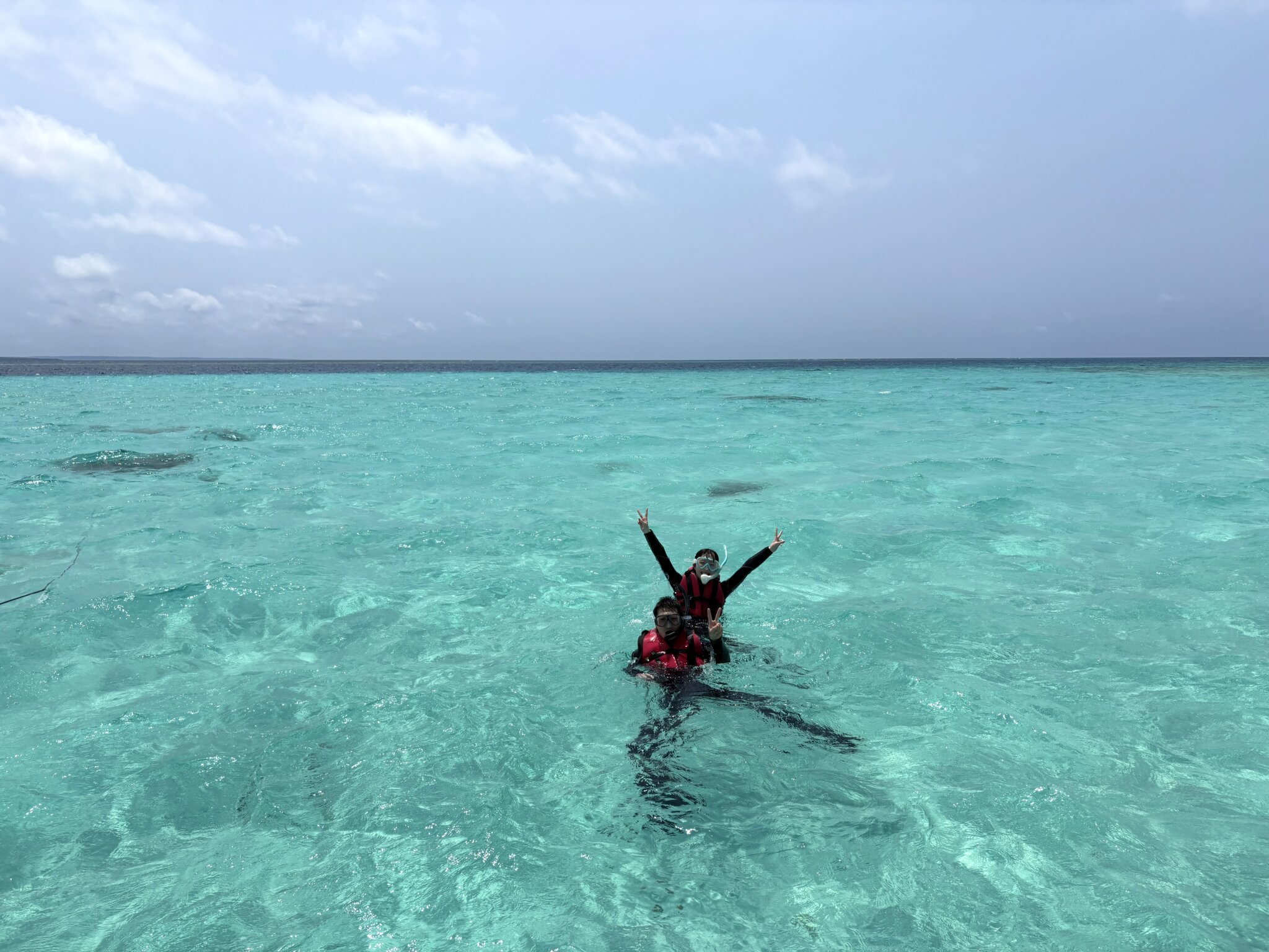 水面はパシャつき気味で、最初は「おっ?」となりますが、水中に顔をつけた瞬間に「あ、いつもの八重干瀬だ」と安心できる透明度🐠✨