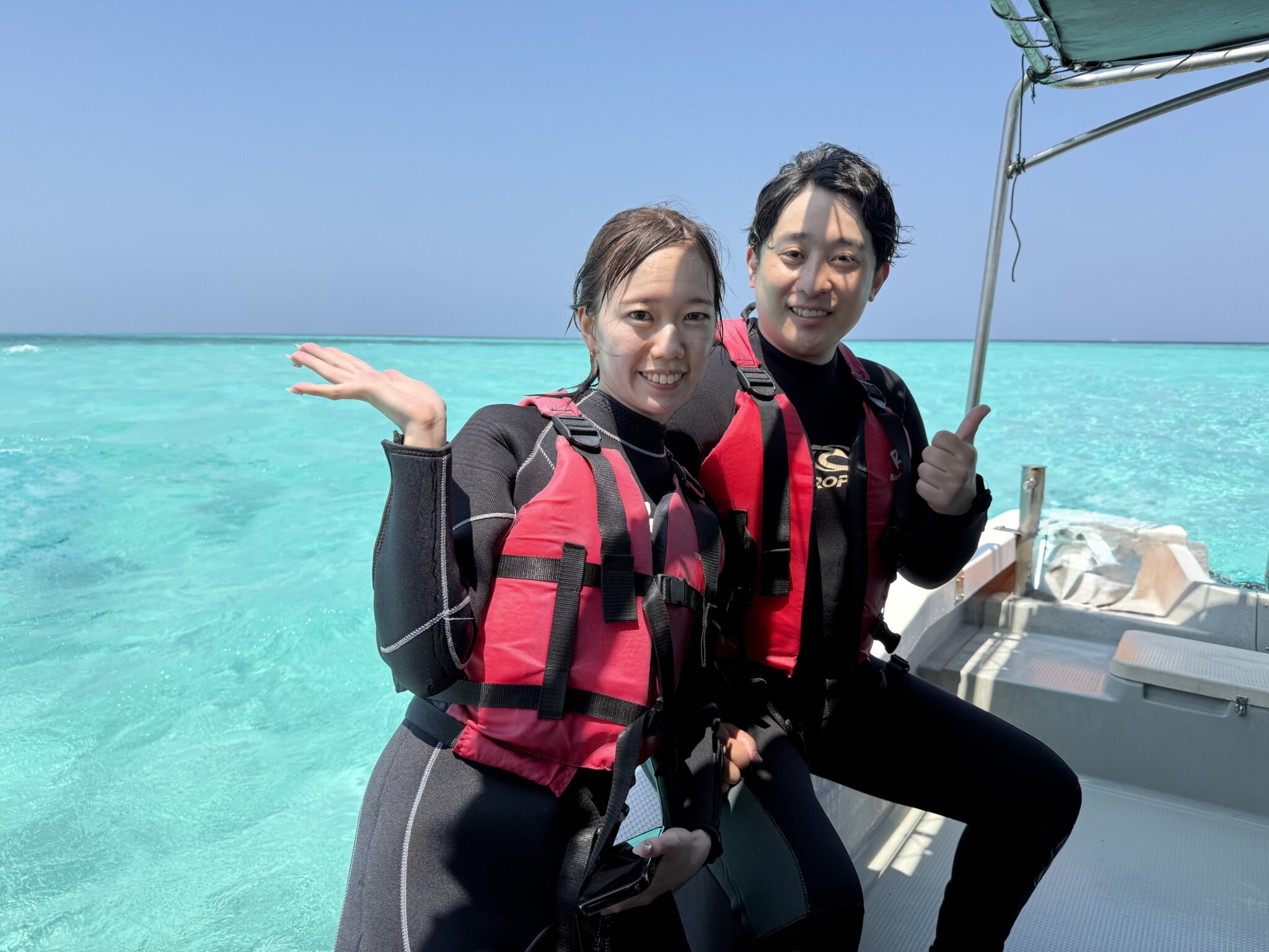 アクアベースは、1年を通して八重干瀬シュノーケルツアーを開催しているので寒さ対策もバッチリ!