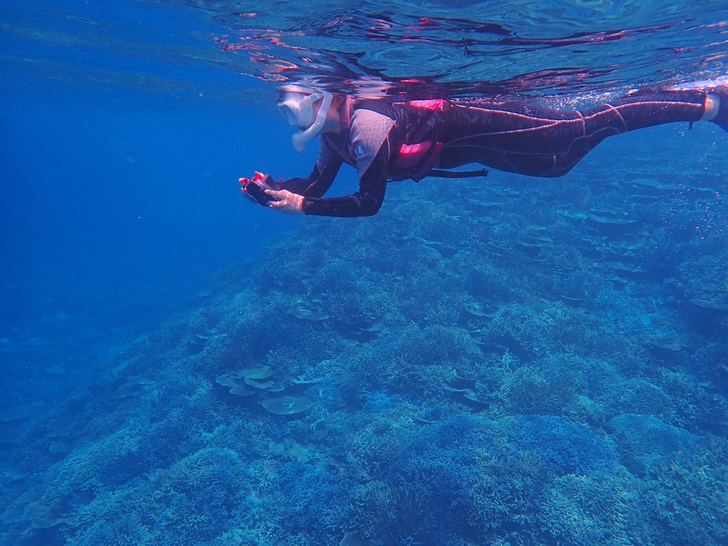 アクアベースは、1年を通して八重干瀬シュノーケルツアーを開催しているので寒さ対策もバッチリ!