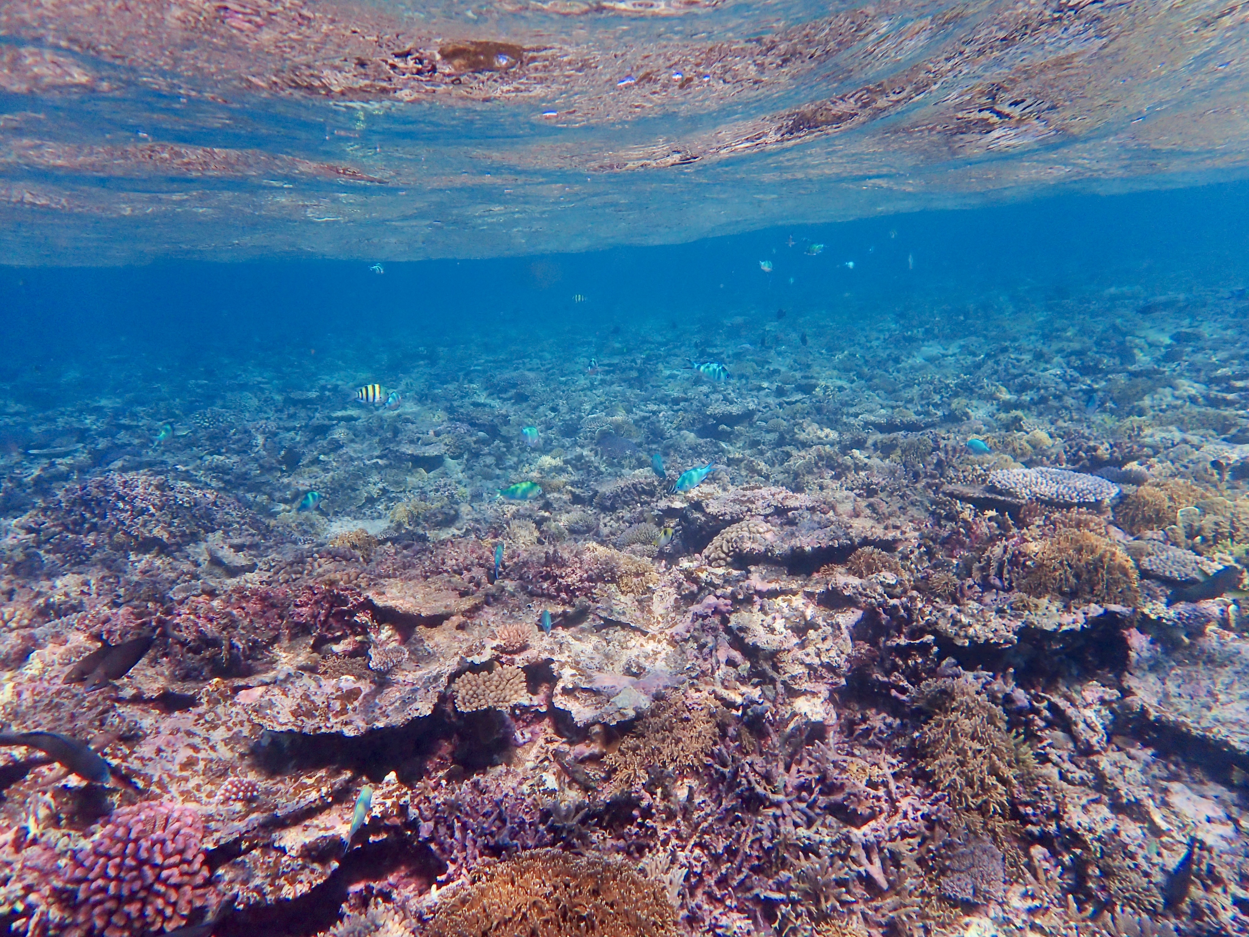 ツアー中は雨が降る時間もありましたが、水中の透明度は問題なし!