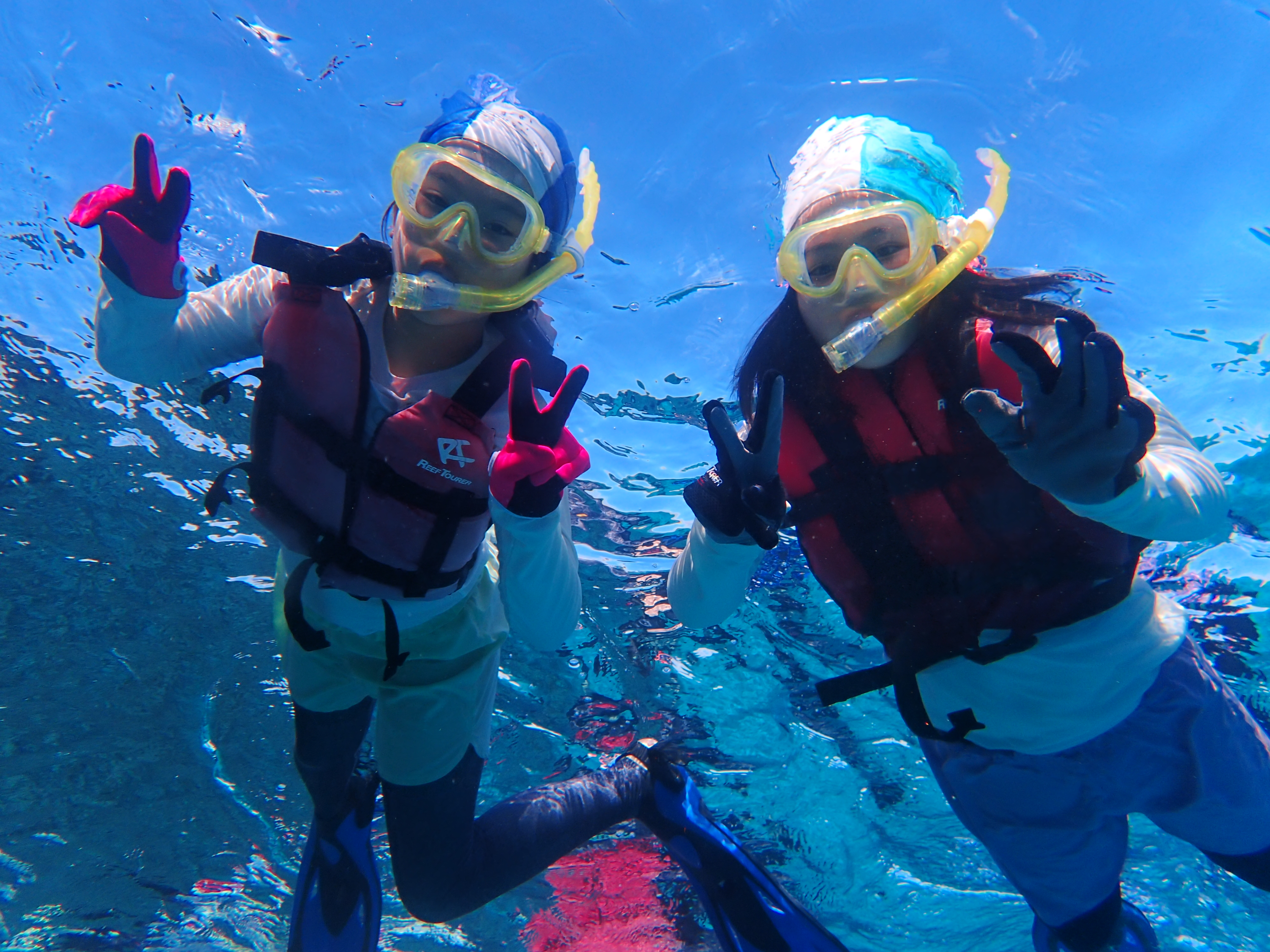 アクアベースは、1年を通して八重干瀬シュノーケルツアーを開催しているので寒さ対策もバッチリ!