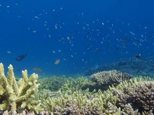 宮古島の周辺のサンゴ礁に比べ、その種類や規模は圧倒的に多く沖合に孤立した環境が育んだ奇跡の海は大きな岩は無く、卓上のサンゴ礁が何層にも重なって形成されている。大規模な八つのサンゴ礁と100以上の小規模のサンゴによって形成されている国内最大規模のサンゴ礁群です。